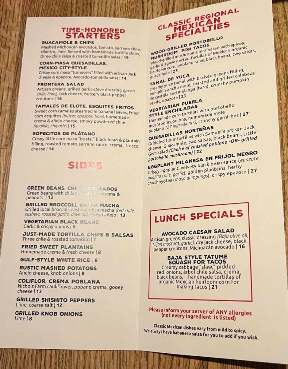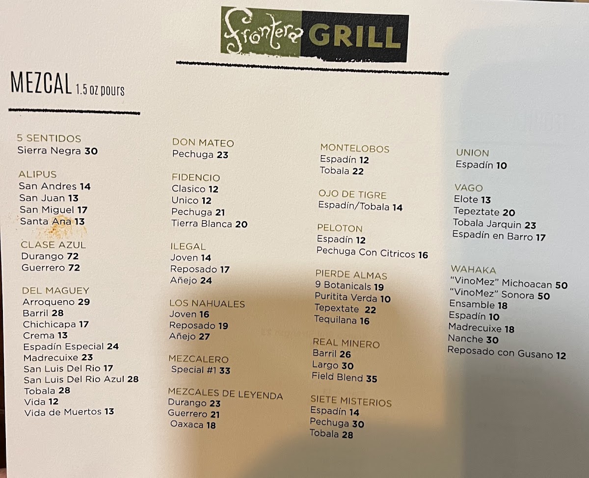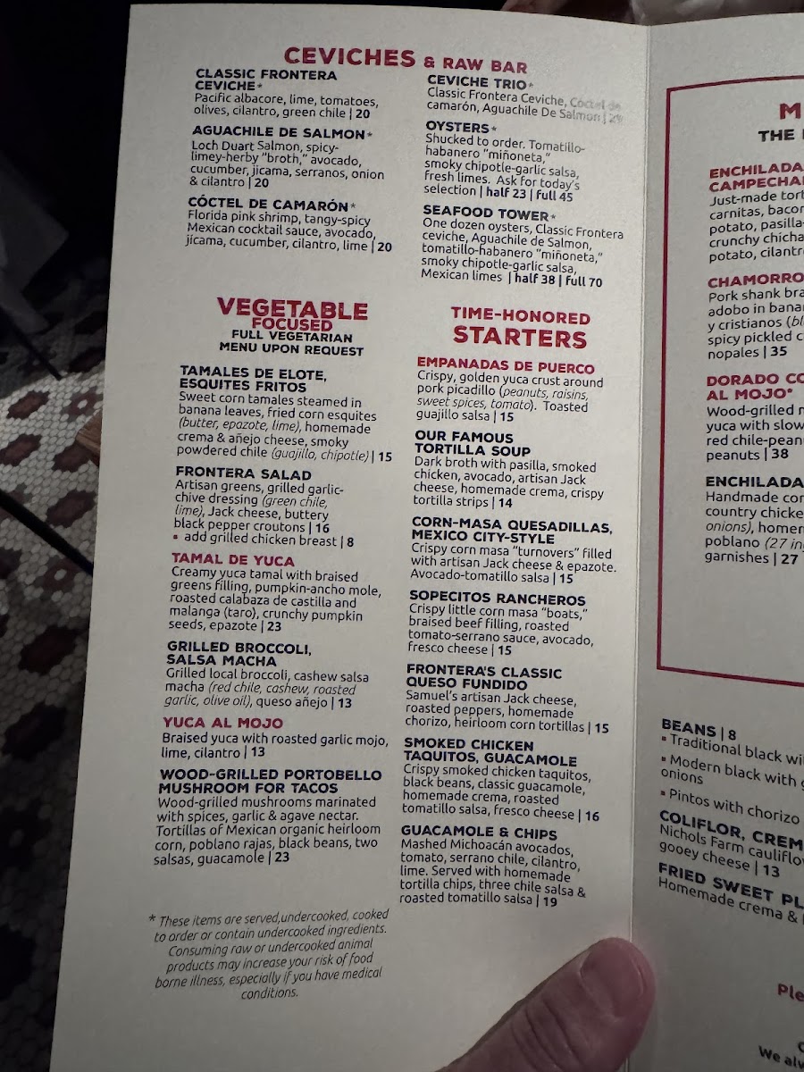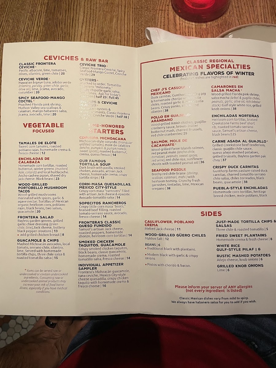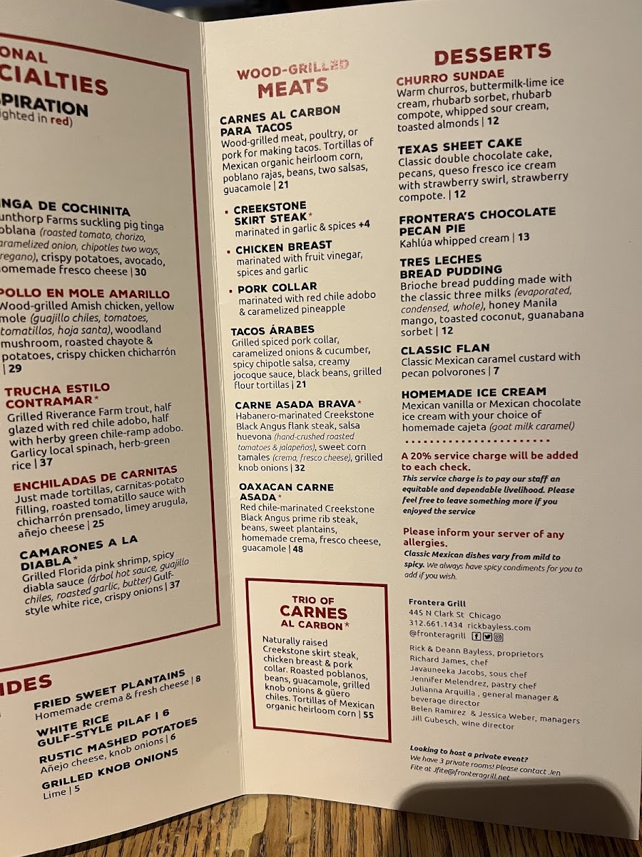 Frontera Grill Menu